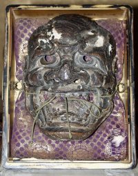 伝説では蓮如に帰依し吉崎参りに出かける夫婦をねたんだ姑が鬼の面をかぶり夜道に待ち伏せをして嫁を驚かそうとしました。嫁は驚かずがっかりした姑が面をはずそうとしますが、はずれません。姑が蓮如の教化を受け悔い改めると、ようやく面がはずれました。