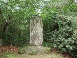 蓮如上人お腰掛けの石:この石は蓮如上人御在世の当時から吉崎御坊の中にあったもので文明六年(一四七四)の「吉崎山絵地図」の中に描かれているのは、この石であろうといわれている。その古絵図は蓮如上人が二人のお弟子を伴い本坊の後の石に腰をかけて、対岸の鹿島や浜坂あたりの景色をご覧になっているところである。