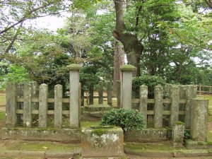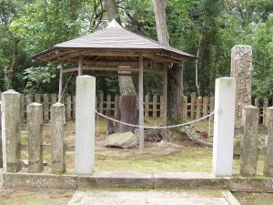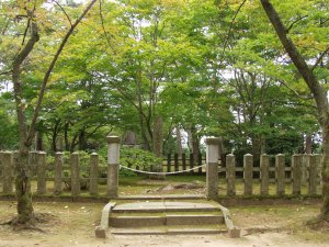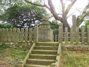 本光坊了顕のお墓:吉崎御山にあった多屋九房の一つに本向寺(足羽郡市波元の寿号本光寺)の坊舎があった。了顕が蓮如上人につかえていると文明六年三月二十八日夕方南大門附近の多屋から出火して吉崎御坊は猛火に包まれた。上人は親鸞聖人御真筆の教行信証六巻の中信の巻を机の上に置いたまま持ち出せなかった。これを知った了顕(三十九才)は猛火の中へ飛びは入り聖教を抱えたまま壮烈な殉教の死を遂げたと伝えられる。