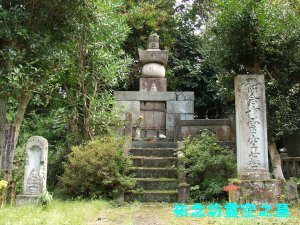 見玉尼のお墓:見玉尼は蓮如上人の第二女で母は伊勢氏平貞房の娘如了。文安五年(1448)の生まれ、七才で母を失い禅寺へかっ食(しき)にやられ、後、京都吉田の浄土宗攝受庵見秀尼の弟子となった。文明二・三年と続いて伯母と姉を失い三年の五月父蓮如上人を慕って吉崎へ来られた。間もなく病にかかり八月十四日二十六才の若さで没した。その間に吉崎御坊の完成を見て真宗の安心(あんじん)を得て往生した。上人は御文の中に「八月十五日の荼毘の暁方の夢に白骨の中から金仏が現れ蝶になって涅槃の都へ飛んでゆくのが見えた」と記されている。 |