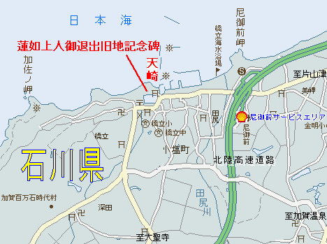 蓮如上人は吉崎退出の際、石川県大聖寺市小塩町天崎のこの港から大船に乗り換えたと伝えられています。