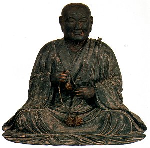 左:親鸞聖人・蓮如上人連座御影 (京都西法寺所蔵) 中:蓮如上人御影 (山科八幅の内) 上:蓮如上人木像 (奈良県吉野町本善寺所蔵) 蓮如上人は生前よりいくつか 自身の姿を絵像として制作し 門末に授与されている。 全国的に上人の木像は多く 残されており、比較的小さな ものが多い。 この木像は実如上人の作と いわれている。