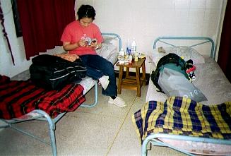 カフェで食べるバゲットサンド、フルーツシェイク、バーガーなども安めでおいしい。 クーラー、バストイレ付きでツイン1泊380バーツ(約1,200円) (この宿は娘Noeからの寄稿です。)