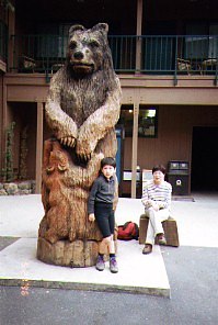 U.S.A 96年5月 ヨセミテ公園内の宿をシーズン中に個人で確保するのは相当難しい。 かなり前から管理事務所に手紙で問い合わせたが、「キャンセルチャージがかかりだす直前に電話してくれれば取れるかもしれない。」ということだけだった。おそらくエージェントが事前に確保してしまっているのだろう。 アップルホテルが園内の宿のクーポンを扱っているが規定料金よりかなり高めだ。 どうしても園内に泊まりたい人はそれしかないだろう。規定より高いのはしゃくだがしかたない、その価値は充分ある。 私達家族の場合はリソースの関係で園内の宿泊は断念し、ゲート手前のPortalにあるこの宿にFaxを入れOKの返事をもらった。 公園メインゲートから車で30分ぐらい手前にある谷間のモーテルだ。 フロントやロビーは山岳リゾート色を演出していてなかなか感じいい。 ![]()