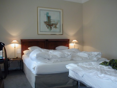 | Hotel Auersperg Sarzburg Austria 05年9月 小ぎれいなプチホテル。 新市街に位置するが旧市街へも歩いてすぐ。周りは交通量も少なく、静かに滞在できる。 部屋の質感も良く、設備も申し分ない。 手入れの行き届いた小さな庭やパブリック部分のインテリアも洒落ていてリラックスできる。 客は小ぎれいな身なりの人たちばかりで階層がはっきりしているようだ。 この宿に一週間ほど滞在できたらミドルクラスを自称しても良いでしょう。 ただし、格安でよいから日本からはCクラスで。 (私達は2泊のみ、席はエコノミー) 特筆すべきは朝食。スパークリングワインやスピリッツ類が置いてあり、朝からカクテルなんかを作って優雅に一杯やることができる。(週末だけかもしれないが。) ![]() 残念だったのはフロントの女性の対応。 黒のパンツスーツで颯爽としているのだが、事務的で冷たい感じ。 宅急便のことを尋ねても「知らないと」言うだけで調べようともしない。 ![]() ジュニアスイートで1泊116ユーロ(税サ朝食別) 朝食は13ユーロ この料金はネットで探したエージェントを通じた料金。 ホテルのホームページでは、すべて込みの料金で予約できる。 http://www.auersperg.at/index.asp 【ホームページ】【ホテル目次】【次のページ】 |