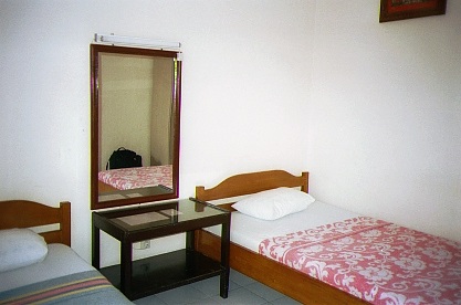 Bali 2000年3月 By Noe 3つあるJesen'sのうちのひとつ。まだ新しく清潔です。 スタッフはフレンドリーでルームサービスも充実。快適です。 ただKutaは町の雰囲気が悪くなじめませんでした。おすすめしません。 買い物も楽しくないし、海も綺麗とは言えません。 この宿と同じ通り(Jl.Br.Anyar)にある兄弟経営のアクセサリー屋さんEva Shopは穴場です。 ![]() ファン、水シャワー、朝食付きでツイン60,000Rp(約900円) Jl.Banjar Anyar No.18, Kuta tel (0361)750819 fax (0361)752647 (この宿は娘ノエからの寄稿です。) |