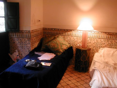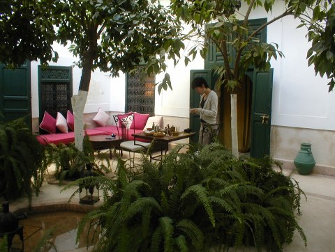 | Dar Jamila Marrakesh Morocco 06年9月 世界遺産であるメディナ、そのスーク(市場)すぐ近くに位置する宿。 ![]() 泊まった部屋はパティオ(中庭)に面していて、庭をリビングの延長として使える開放的なつくりになっている。 ただ、壁の塗装や床のタイルが少しくたびれているようだった。 車のまったく入り込めないところなので、夜は本当に静か。 朝は中庭の植木にやってくる小鳥のさえずりが目覚まし代わりとなる。 この中庭での夕食も可能。ワインやビールも用意されている。 ![]() その中庭でとる朝食はコンチネンタル。 フレッシュオレンジジュース、クレープが美味だった。 ![]() 歩いてすぐそこがスークだから、スーク探検には最適なロケーション。 ただし、タクシーを捕まえることもできないところなので、短期滞在には向かない。 近くに「アラブ・カフェ」というツーリスト向けのしゃれたレストランがある。 一泊54ユーロ朝食込み シャワーブース、暖炉あり スタッフはほとんど英語が通じないがなんとかなるものである。 【ホームページ】【ホテル目次】【次のページ】 |